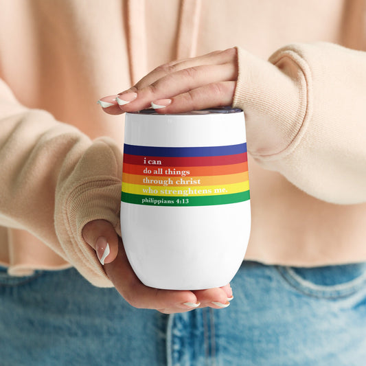 Philippians 4:13 Rainbow - Wine tumbler - White