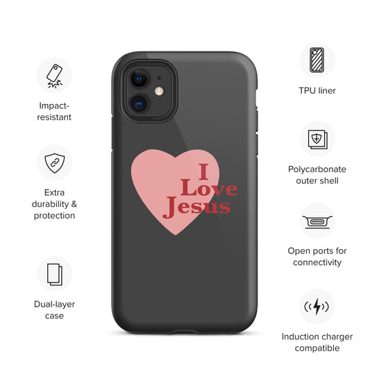 I Love Jesus - Charcoal - Tough iPhone case for iPhone 11 Pro Max & Mini, 12 Pro Max & Mini, 13 Pro Max & Mini, 14 Pro Max & Mini