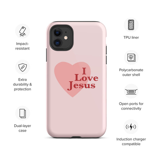 I Love Jesus - Pink - Tough iPhone case for iPhone 11 Pro Max & Mini, 12 Pro Max & Mini, 13 Pro Max & Mini, 14 Pro Max & Mini