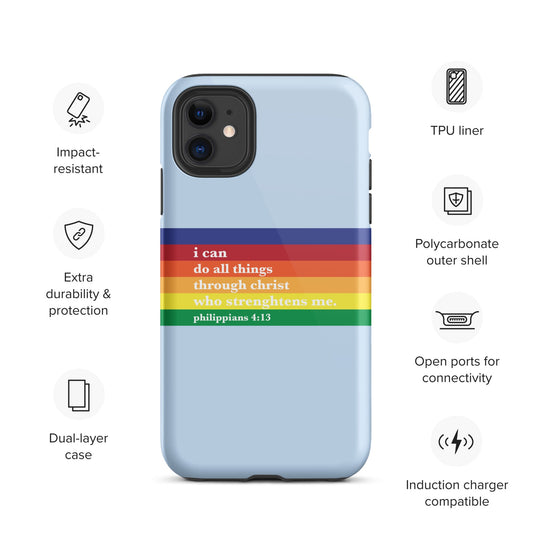 Philippians 4:13 - Blue - Tough iPhone case for iPhone 11 Pro Max & Mini, 12 Pro Max & Mini, 13 Pro Max & Mini, 14 Pro Max & Mini