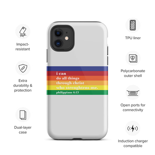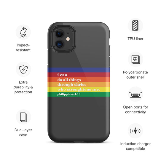 Philippians 4:13 - Charcoal - Tough iPhone case for iPhone 11 Pro Max & Mini, 12 Pro Max & Mini, 13 Pro Max & Mini, 14 Pro Max & Mini