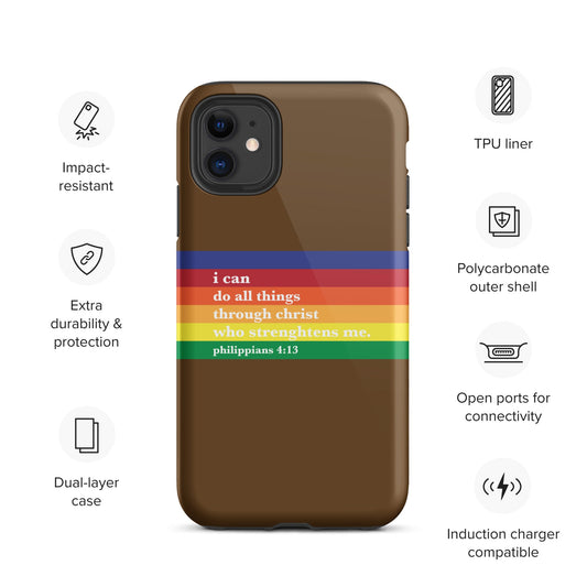 Philippians 4:13 - Chocolate - Tough iPhone case for iPhone 11 Pro Max & Mini, 12 Pro Max & Mini, 13 Pro Max & Mini, 14 Pro Max & Mini