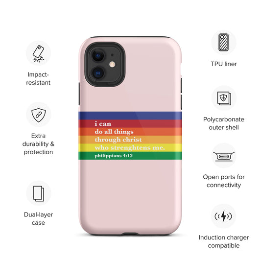 Philippians 4:13 - Pink - Tough iPhone case for iPhone 11 Pro Max & Mini, 12 Pro Max & Mini, 13 Pro Max & Mini, 14 Pro Max & Mini