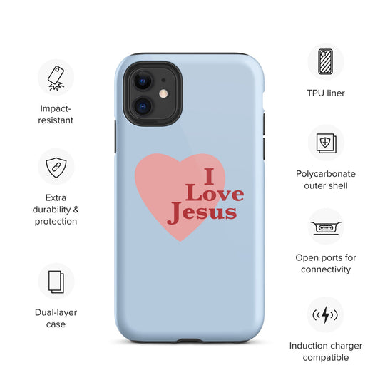 I Love Jesus - Blue - Tough iPhone case for iPhone 11 Pro Max & Mini, 12 Pro Max & Mini, 13 Pro Max & Mini, 14 Pro Max & Mini